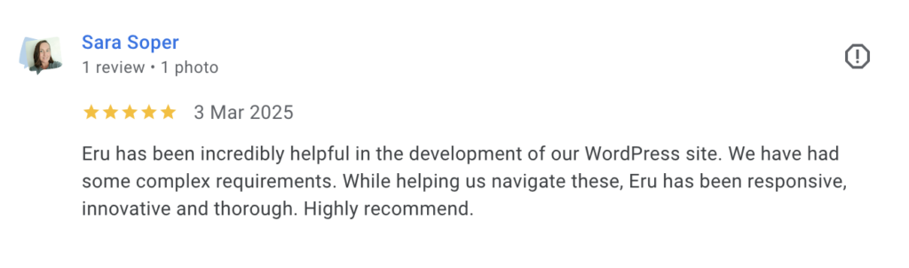 We have found Eru's work to be of extremely high quality, reliable, and well-executed. I would highly recommend Eru's services with WordPress development and security management.